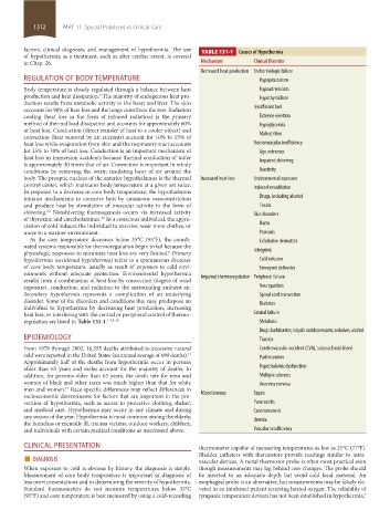 factors, clinical diagnosis, and management of hypothermia. The use TABLE 131-1 Causes of Hypothermia