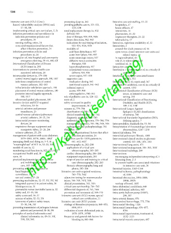 Intensive care unit (ICU) (Cont.): promoting sleep in, 161 Intensive care unit staffing, 15–22
