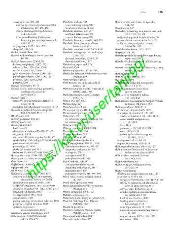 edema bullae, 1295–1296, 1296f Methanol, 1208 Mortality Probability Model (MPM II) scoring