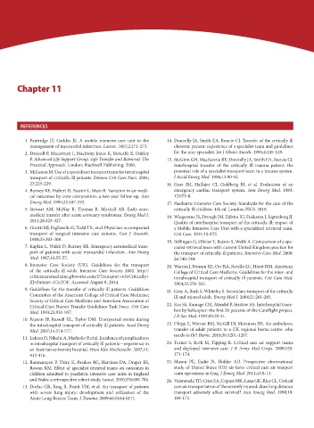1. Pantridge JF, Geddes JS. A mobile intensive-care unit in the 14. Donnelly JA, Smith EA, Runcie CJ. Transfer of the critically ill