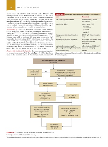 causes should be identified and corrected (Table 36-7). 25-27 The TABLE 36-7 Management of Ventricular Tachycardia due to Reversible Causes