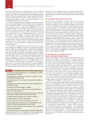 TABLE 4-3 Selected Guidelines for the Prevention of Ventilator-Associated Pneumonia 66% reduction in the incidence of ICU-acquired bloodstream infec-