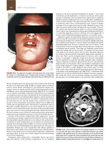 FIGURE 73-8. Early appearance of a patient with Ludwig angina with a brawny, board- jugular vein can also be demonstrated by magnetic resonance angiogra-