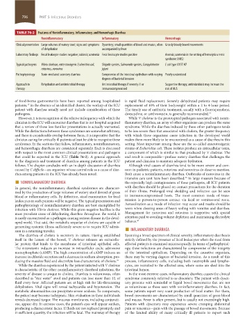 TABLE 76-2 Features of Noninflammatory, Inflammatory, and Hemorrhagic Diarrhea