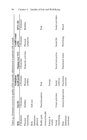 Table 4.2 SF36 8 Domains: Physical functioning Role limitations- physical Bodily pain Energy & vitality Social functioning Role limitations – emotional