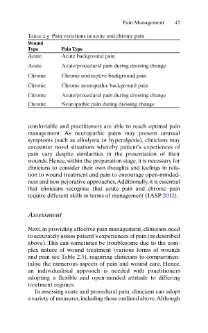 Table 2.5 Pain variations in acute and chronic pain