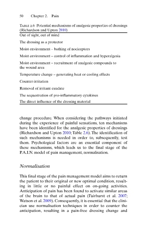 Table 2.6 Potential mechanisms of analgesic properties of dressings