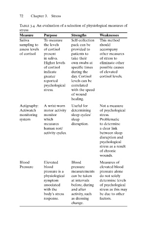 Table 3.4 An evaluation of a selection of physiological measures of