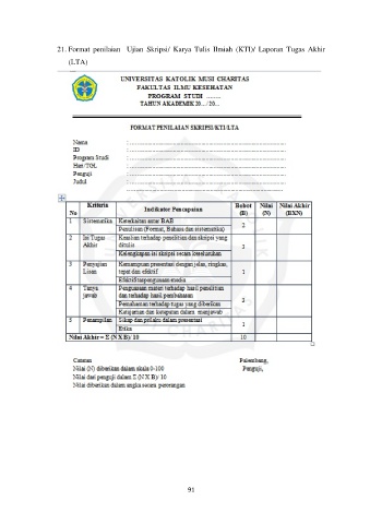 21. Format penilaian Ujian Skripsi/ Karya Tulis Ilmiah (KTI)/ Laporan Tugas Akhir (LTA) 91
