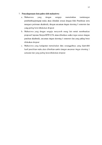c. Mahasiswa yang kedapatan memalsukan data sesungguhnya yang diperoleh