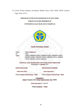 15. Contoh Format halaman persetujuan Skripsi/ Karya Tulis Ilmiah (KTI)/ Laporan Tugas Akhir (LTA) 85