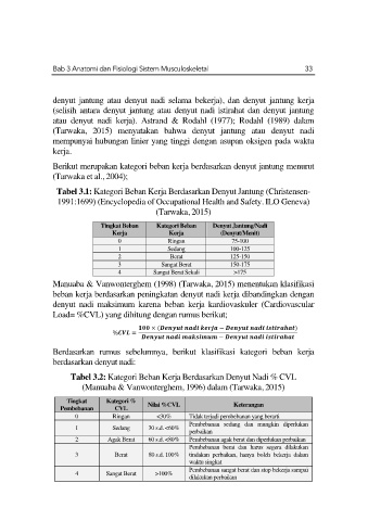 Tabel 3.2: Kategori Beban Kerja Berdasarkan Denyut Nadi % CVL