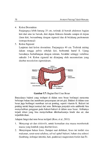 Adapun fungsi dari usus besar meliputi (Ross, et al., 2011):