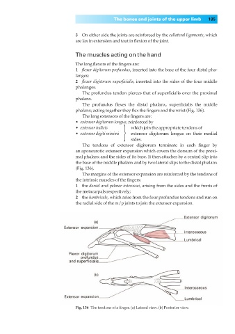 Fig. 136◊The tendons of a finger. (a) Lateral view. (b) Posterior view.