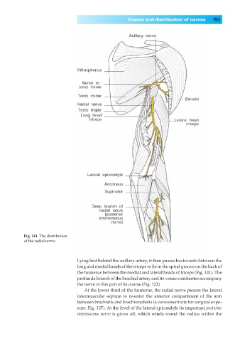 the humerus between the medial and lateral heads of triceps (Fig. 141). The