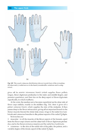 Fig. 143◊The usual cutaneous distribution (shown in pale blue) of the (a) median,