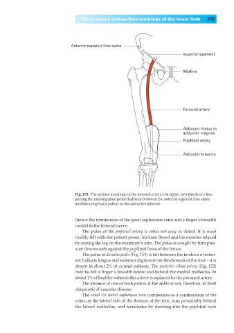 Fig. 153◊The surface markings of the femoral artery; the upper two-thirds of a line