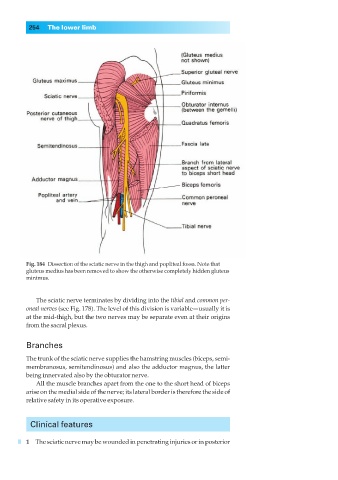 Fig. 184◊Dissection of the sciatic nerve in the thigh and popliteal fossa. Note that