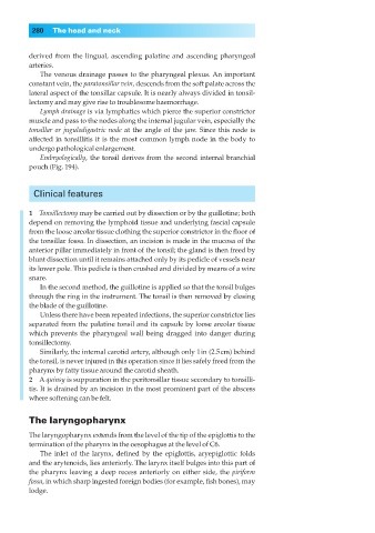 lateral aspect of the tonsillar capsule. It is nearly always divided in tonsil-