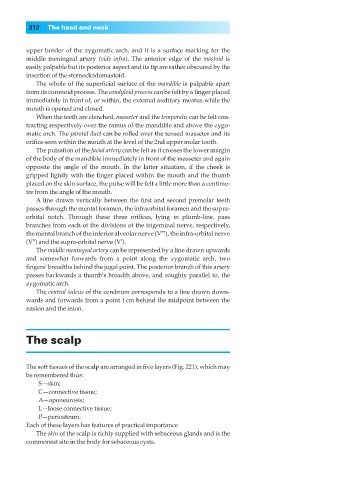 The soft tissues of the scalp are arranged in five layers (Fig. 221), which may