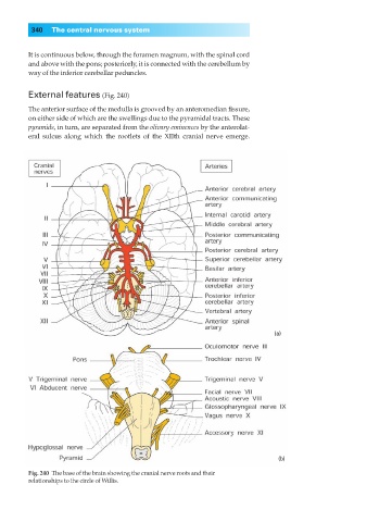 Fig. 240◊The base of the brain showing the cranial nerve roots and their