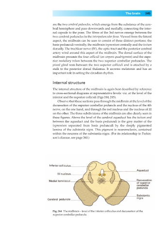 Fig. 244◊The midbrain—level of the inferior colliculus and decussation of the