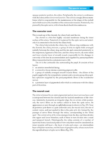 opaque posterior portion, the sclera. Peripherally, the cornea is continuous