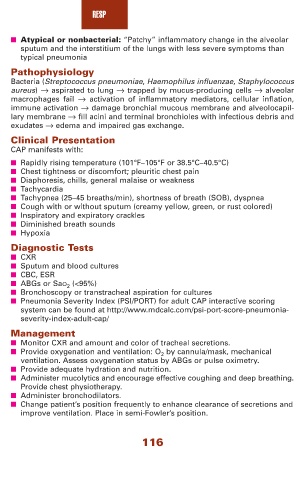 ■ Atypical or nonbacterial: “Patchy” inflammatory change in the alveolar