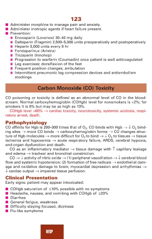COHgb level >60% → cardiac toxicity, neurotoxicity, systemic acidosis, respi-