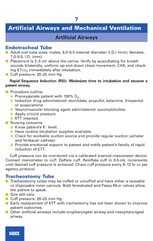 ■ Other artificial airways include oropharyngeal airway and nasopharyngeal