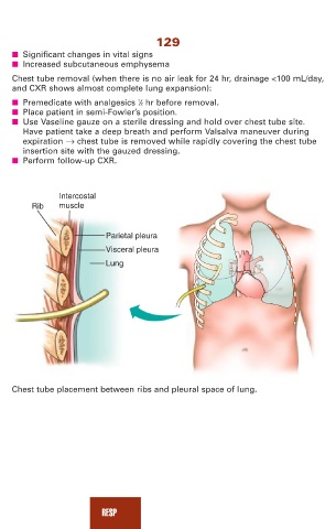 ■ Use Vaseline gauze on a sterile dressing and hold over chest tube site.