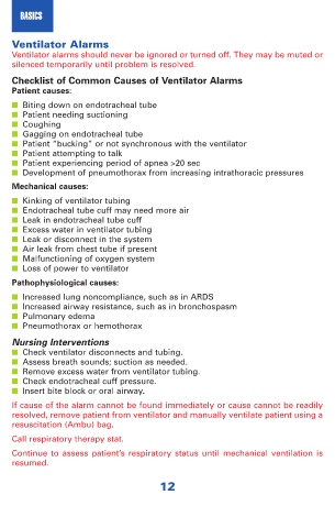 Checklist of Common Causes of Ventilator Alarms