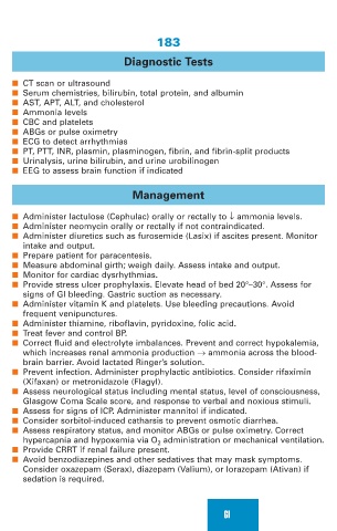 ■ Administer lactulose (Cephulac) orally or rectally to ↓ ammonia levels.