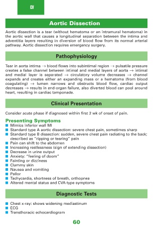 ■ Standard type B dissection: sudden, severe chest pain radiating to the back;