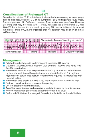 tations, dizziness, seizures, VT, or no symptoms. ECG findings: QTc >0.50 msec,