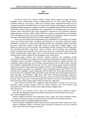 pengabdian kepada masyarakat di lingkungan UKMC. Pedoman-pedoman kegiatan penelitian dan