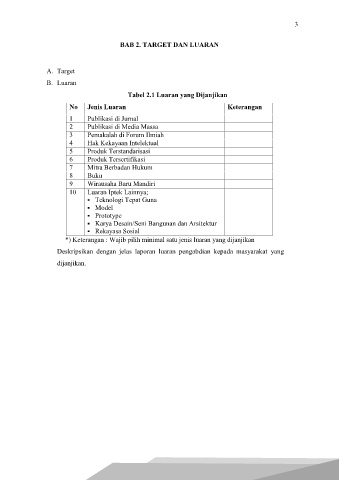*) Keterangan : Wajib pilih minimal satu jenis luaran yang dijanjikan