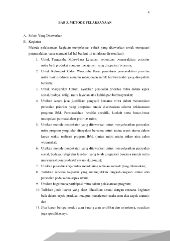 Metode pelaksanaan kegiatan menjelaskan solusi yang ditawarkan untuk mengatasi