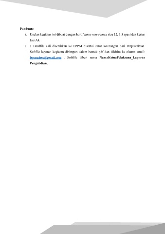 Softfile laporan kegiatan disimpan dalam bentuk pdf dan dikirim ke alamat email: