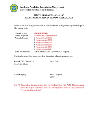 Ket: *) Disesuaikan dengan jabatan dari perwakilan mitra, jika PKM dilakukan pada