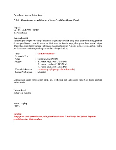 Prihal : Permohonan penerbitan surat tugas Penelitian Skema Mandiri