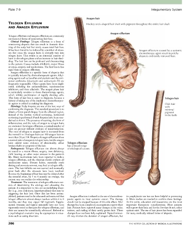 TELOGEN EFFLUVIUM Hockey stick–shaped hair shaft with pigment throughout the entire hair shaft