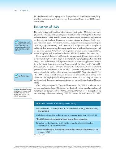 TABLE 5-7 Limitations of the Laryngeal Mask Airway