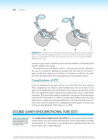 Figure 5-11 After placement of the pharyngealtracheal lumen airway, both cuffs are inflated. (A)