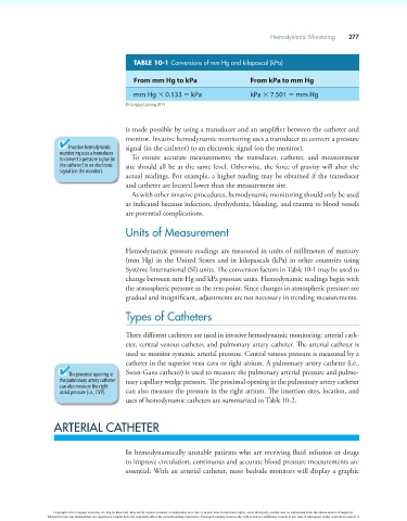 Three different catheters are used in invasive hemodynamic monitoring: arterial cath-