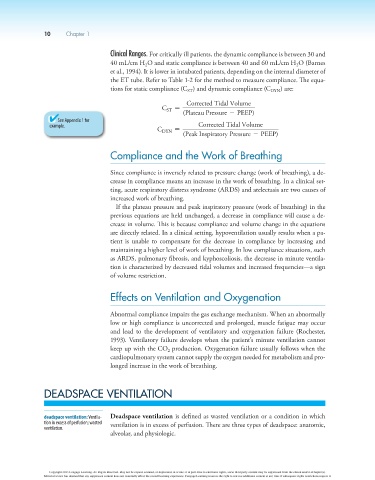 the ET tube. Refer to Table 1-2 for the method to measure compliance. The equa-