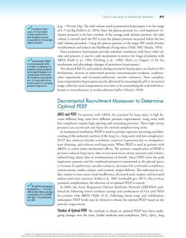 a combination of F I O 2 and PEEP for patients with ARDS (Table 15-3). Following initial setup and stabilization,