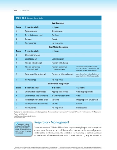 TABLE 15-9 Glasgow Coma Scale