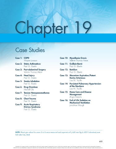 NOTE: Blood gas values for cases 2 to14 were measured and reported at P B 640 mm Hg (4,400 ft elevation) near