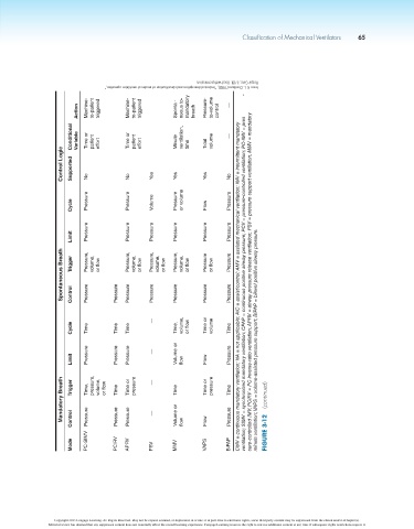 Mandatory Breath Trigger Control Time, Pressure pressure, volume, or flow Time Pressure Time or Pressure pressure — — Time Volume or flow Time or Flow pressure Time Pressure (continued)